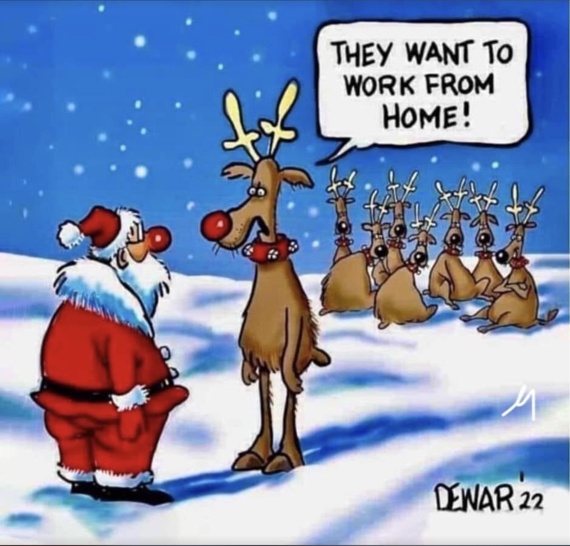 | An informed leader of remote teams would respond, “as long at it's hybrid-remote and they are delivering presents on the in-office days that's fine with me.” | |