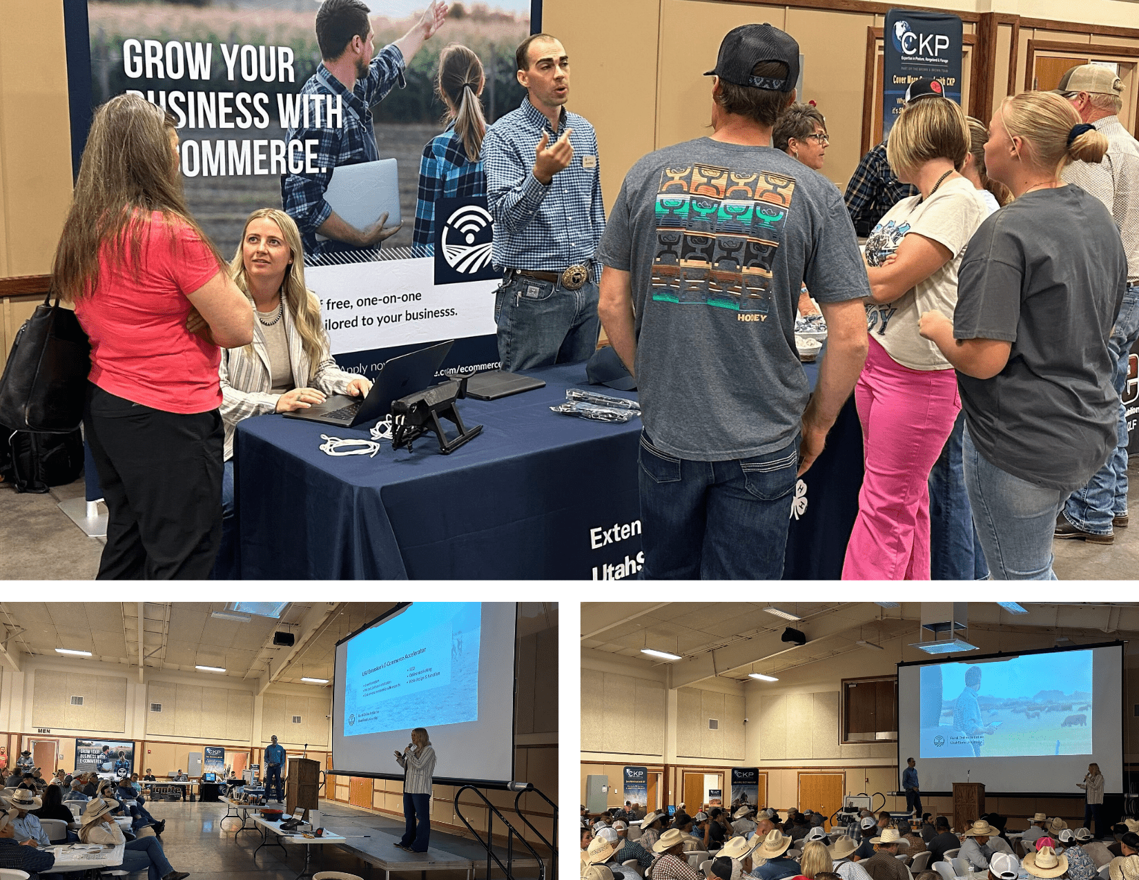 Abbey Bean and Jacob Webb, business consultants for the ROI program’s E-Commerce Accelerator, presented to a statewide audience of beef producers at the Stockmanship & Stewardship Conference in Richfield August 23-24th.The E-Commerce Accelerator (ECA) is a new service that helps small businesses in rural Utah grow through online sales. Learn more about how we can help you | |