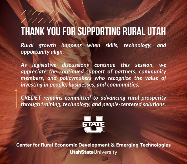 Know a friend or colleague who would like to receive monthly updates on Utah State University's CREDET? Please share this email with them. | |