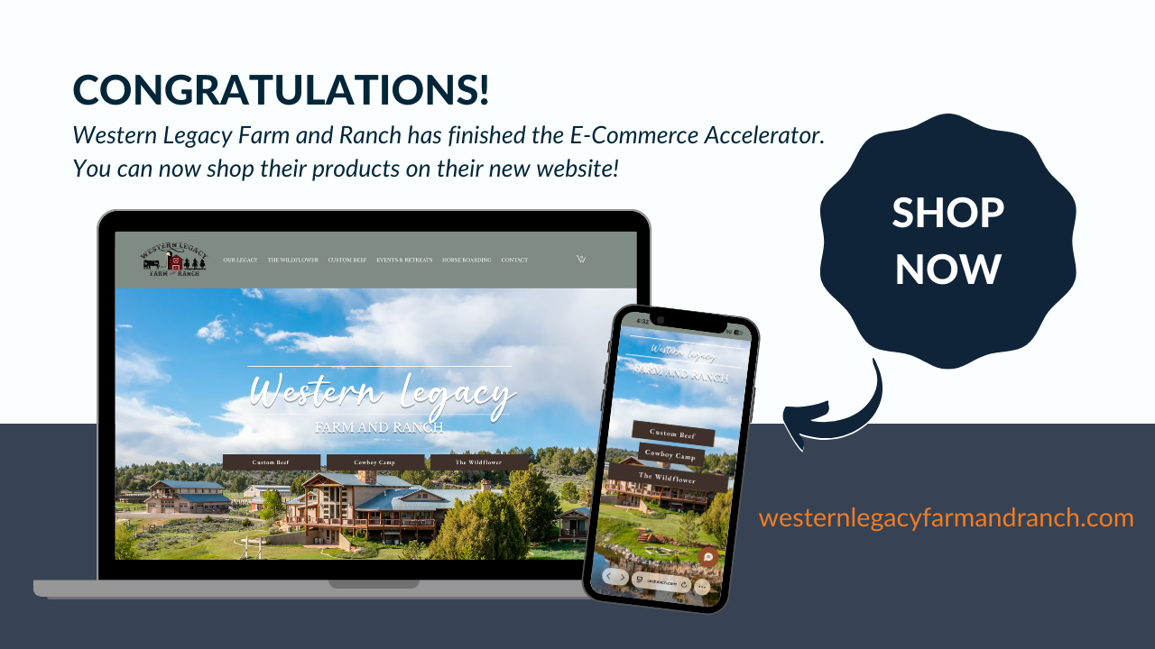 "The E-Commerce Accelerator has helped us market our beef and farm camps to a larger audience," said Kathie Iverson of Western Legacy. "It has increased our farm's overall revenue and profitability." |